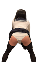 ノーメイクなのでマスクとウイッグにレオタードかスク水、女性服とスカート+黒タイツ履いて目隠し待機出来ます。