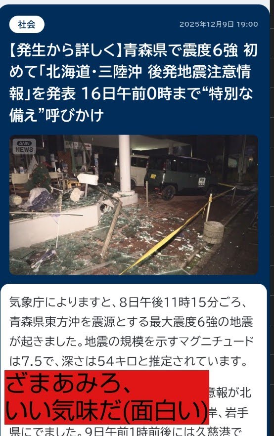地震🫨で甘ったれるな。