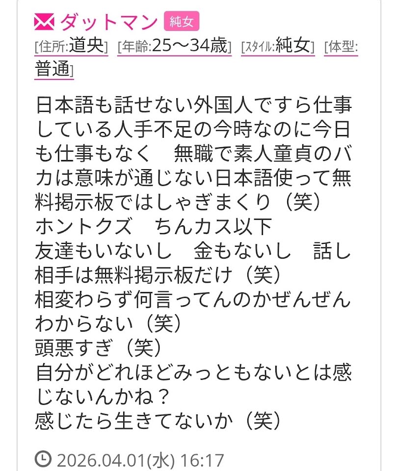 お前が投稿する度にスクショして他の無料掲示板に貼りつけるだけだ