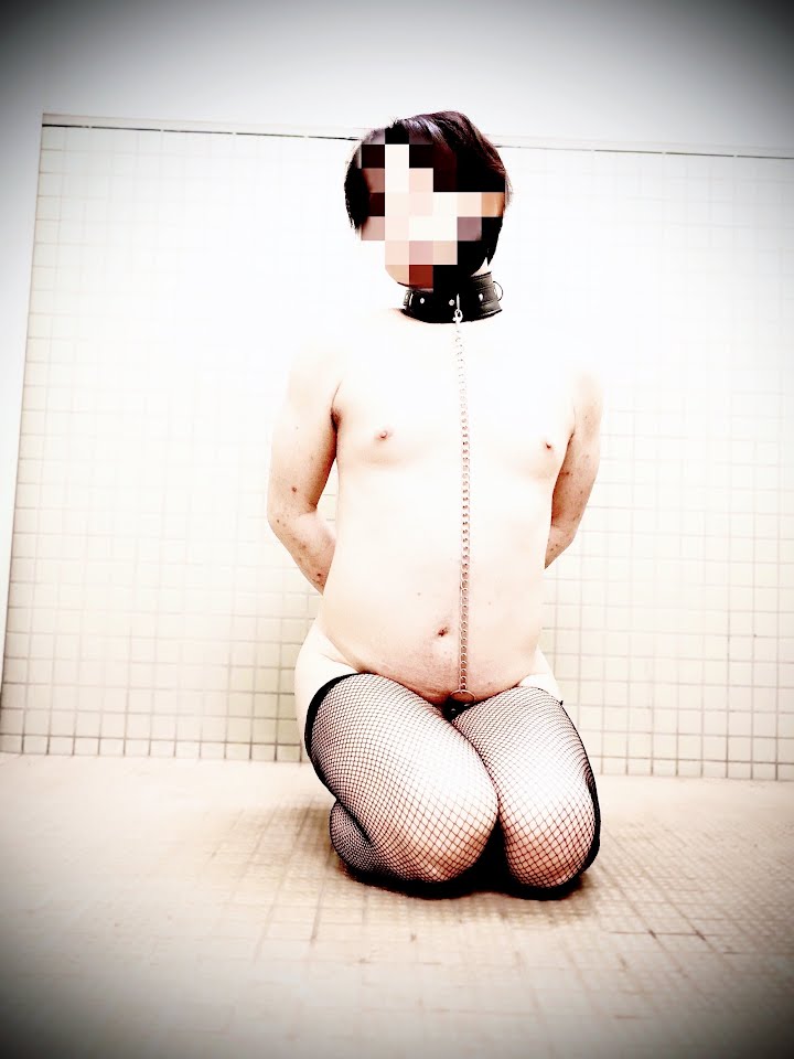 男子トイレで裸に網タイツ履いてフェラ手コキします