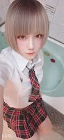 どちらもパイパン、ストッキング、ミニスカ、ウィッグ、メイク、太ももにタトゥーシールしてます。