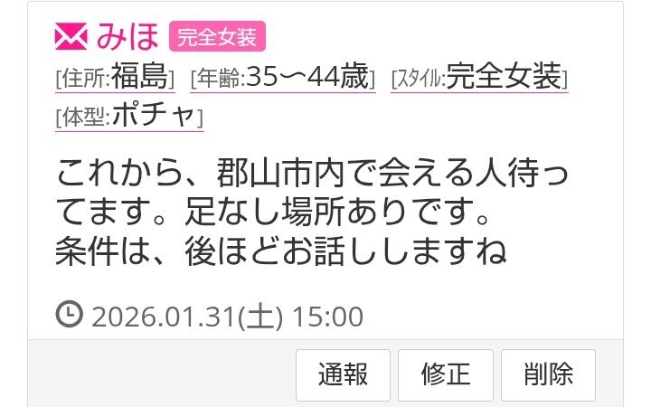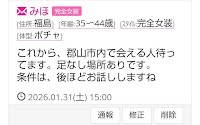 今日これからから郡山市内で会える方、