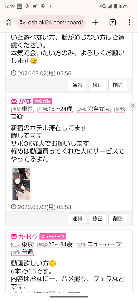 女性限定お触り手コキゴムありフェラクンニありで会える女性いませんか?年齢スタイルは気にしません。1.0〜お渡しします。詳しくはメールで!男や女装してる人は無理!男性のなめたりはしたくはないので!簡単なプロフと首から下の写真つけてメールしてください