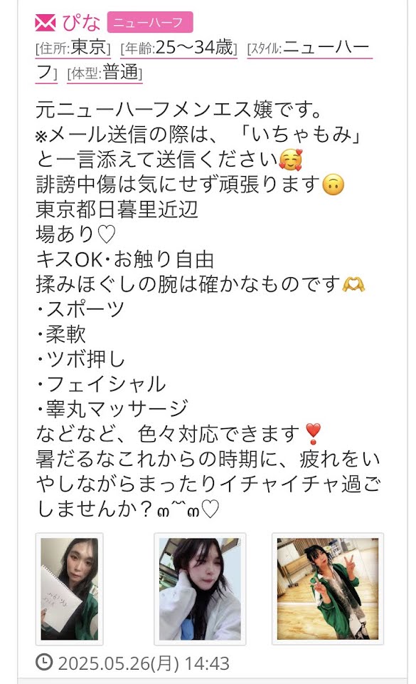 必ずプロフ住み書いてメールください。