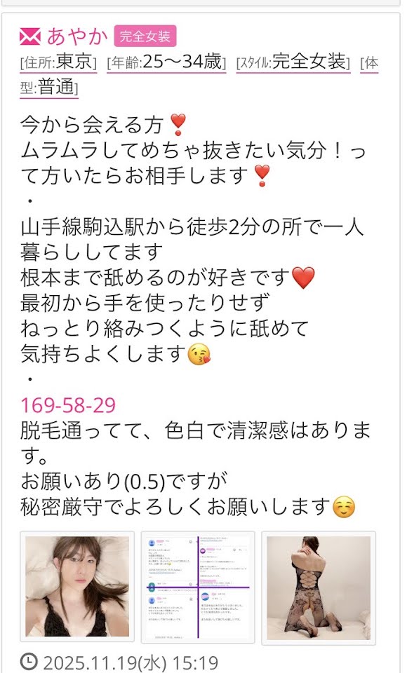 条件あり。身長170体重58こちらセーラー服や体操服ブルマ、ランジェリーなど下着も多数あります。ウィッグもロングとショートあり。川越方面に場所あり。