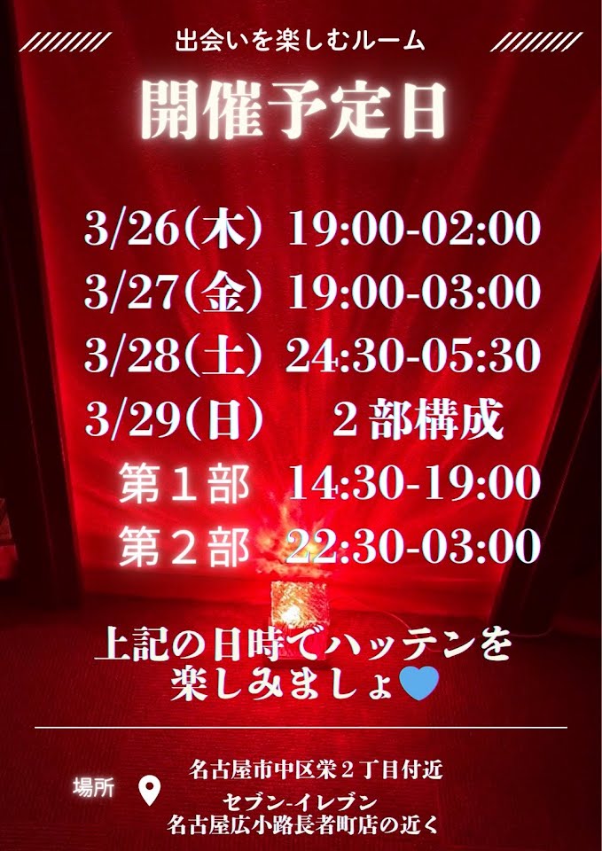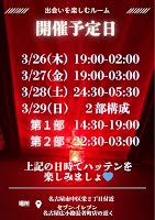 3月29日(日)14:30〜19:00 22::30〜03:00