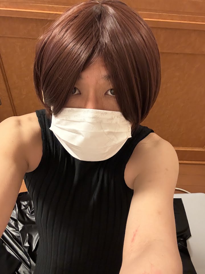 化粧無しマスク姿ですが、変態マゾとしてあつかわれたいです。