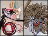 道具は多種多様揃えており麻縄での緊縛も得意でデスよ♡。(写真は自縛)