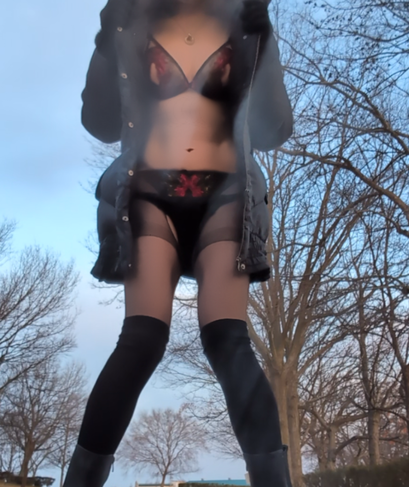 黒のボディストッキング姿で車内待機します