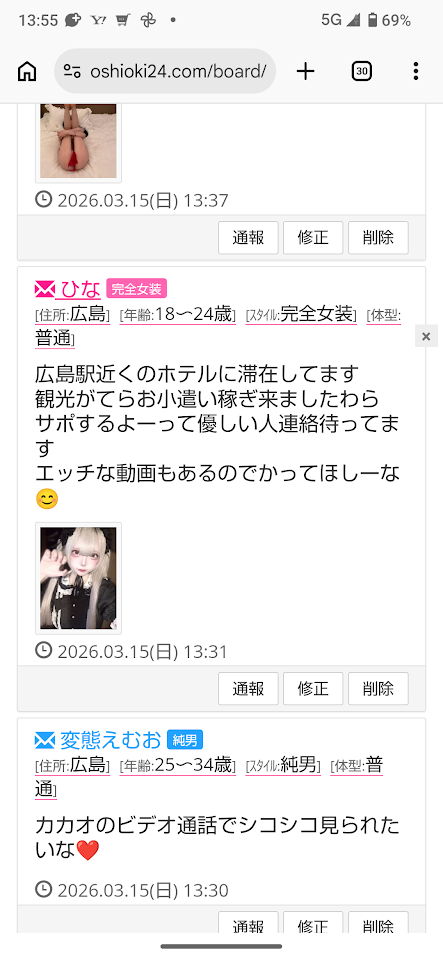 明日広島市内のホテルでお会いできる女装さんいませんか?