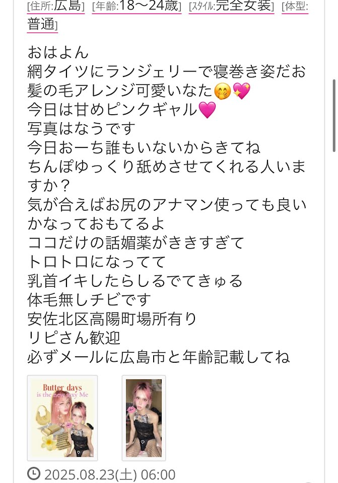最近かわいい男の娘に興味があって募集しています。仲良くなれたら定期で彼女になって欲しいです。10代から30代まで
