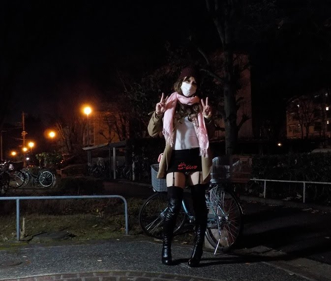 今夜は、寒くないので素っ裸の姿で野外の公園でベンチに座り誰かに見られたいわ~🍄
