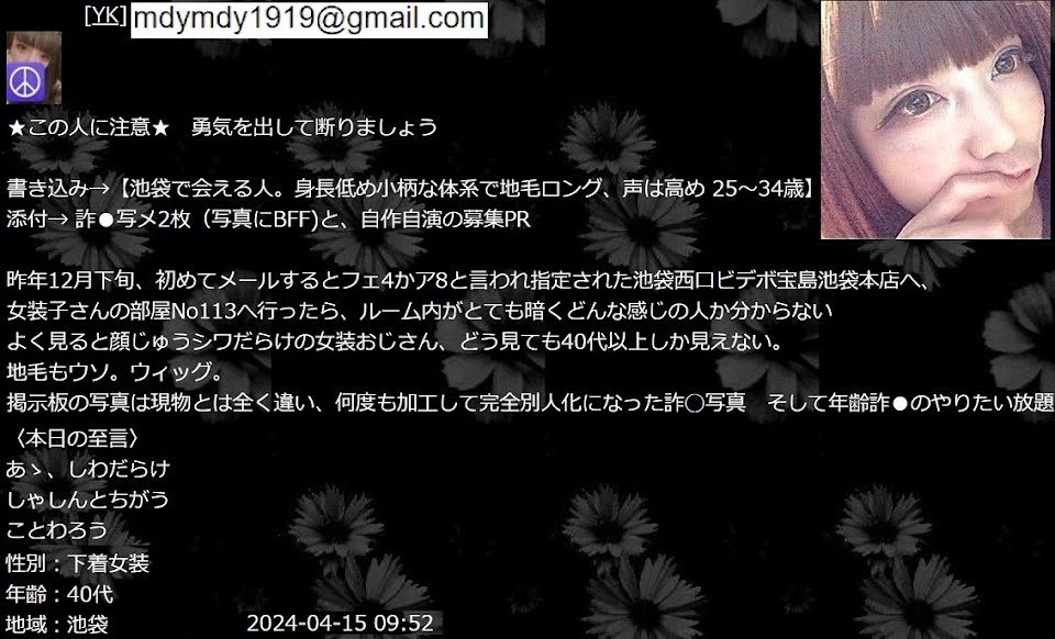 画像の池袋ビデボ徘徊している生活保護の中年ホモはコン ジローマ持ち(再発を繰り返す) 修正アプリでごまかしているハゲで奇形チビで不細工で髭が濃い!唇無くてカ ッ パみたい。 宝島池袋本店で待ち合わせし金を請求します。 一昔前から男娼を繰り返しビデボを性風俗店として悪用!業務妨害!稼いだ金銭に発生する税金も納めていないはず。 会った人は金品を盗られないように気を付けてね。