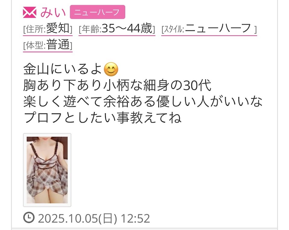 今日名駅南・大須付近でこの後の時間からホ別1で遊んでくれる人いませんか?こちらの場所でも可能ですがその場合は込み1.2でお願いします。