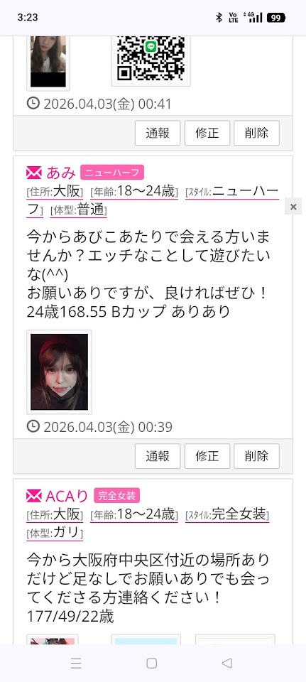 今日の夜(24:00以降)通天閣付近でお願い有で募集してます